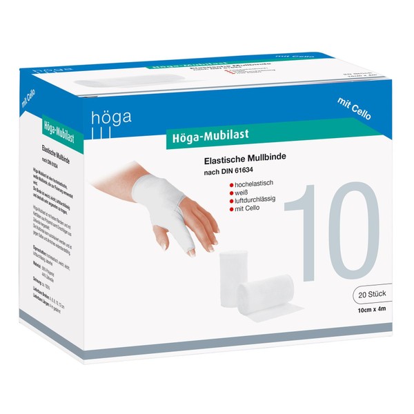 Höga Mubilast, elastische Mullbinde/Fixierbinde 10 cm x 4 m gedehnt, á 20 Stück, DIN 61634