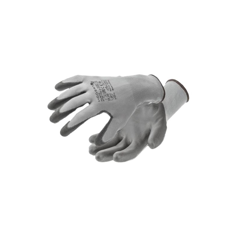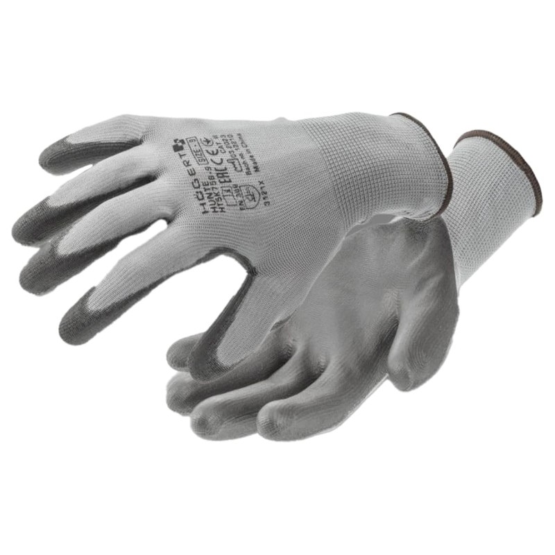 Högert Technik HUNTE Polyurethane Coated Gloves, C.Grey/Black, Size 9, 12 Pairs/Pack, Abrasion Resistant and Flexible, Ideal for Precise Work