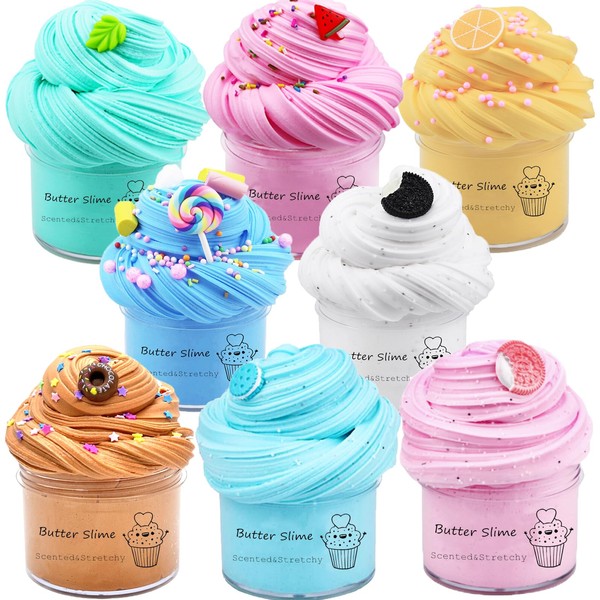• 8 packed butter slime kit for girls 10-12, super soft and non sticky.