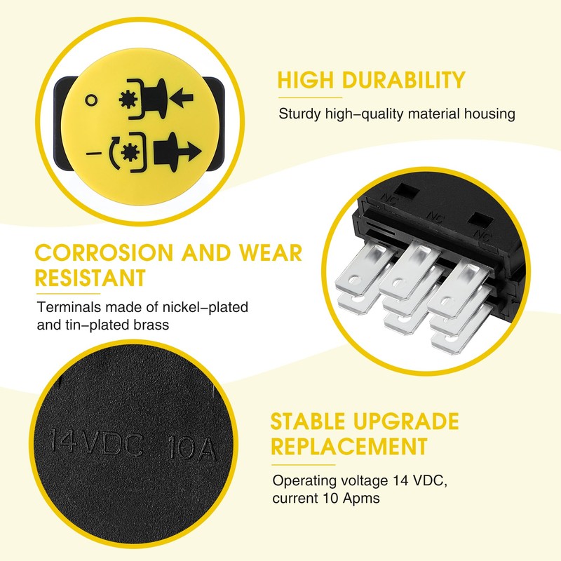 - Simple installation: make sure the equipment is powered off, disassemble the old switch, check the terminal position of the new switch, align the connector and press it down until it is firmly fixed on the panel, check if the switch is mounted flat and not loose, test the switch and make sure the switch can control the on/off state of the lawn mower. Note please make sure the specification of the new switch matches with the mower