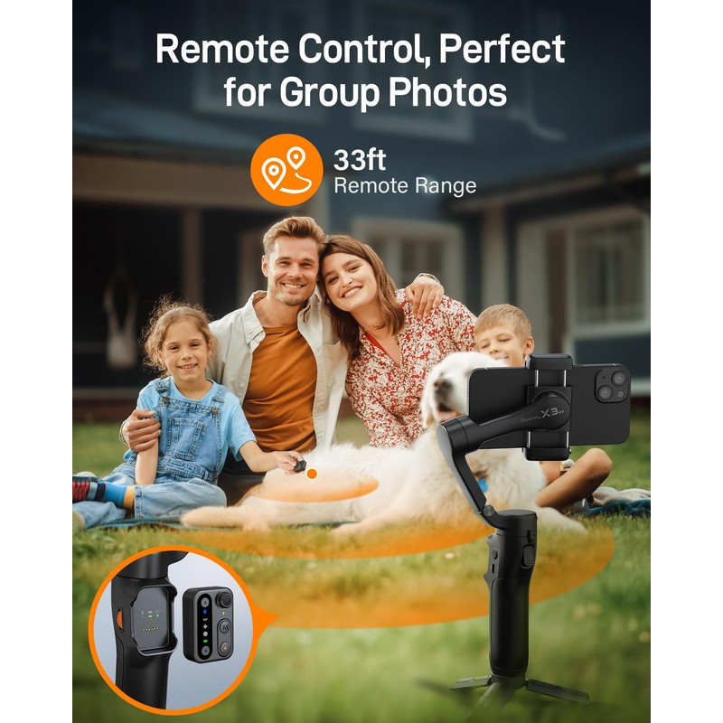 - Detachable Remote Controller: The hohem iSteady X3 SE Gimbal comes with a detachable magnetic remote, allowing you to effortlessly control selfies and videos from up to 32.81 feet away. This phone stabilizer is perfect for capturing family gatherings and solo travel moments with ease