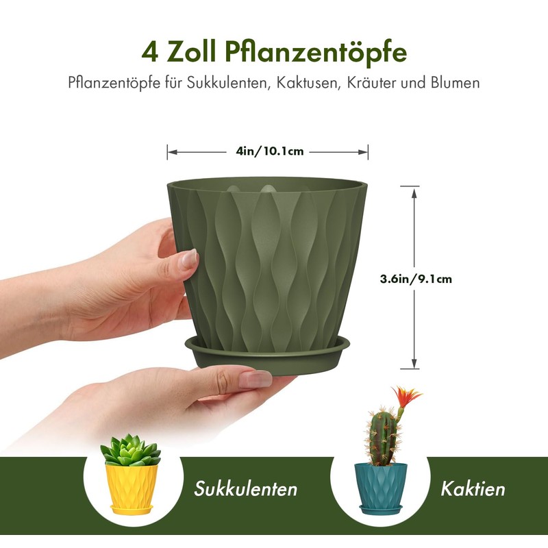 - Compact size for flexible use: with their handy size, these small flower pots are ideal for plant pots on the table, shelf or on the patio. Whether as a planter, plant pot inside, flower pot or succulent pot, they fit in almost any living or work situation.