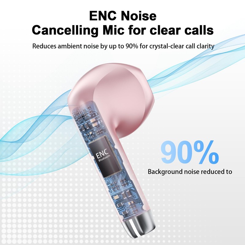 - Hi-Fi deep bass stereo: the in-ear Bluetooth headphones use 13 mm speakers that deliver strong bass, clear mids and bright high tones, so you can immerse yourself in the world of music. In addition, the Bluetooth headphones are equipped with ENC call noise cancellation technology, so you can make clear calls even on the subway and have undisturbed conversations.