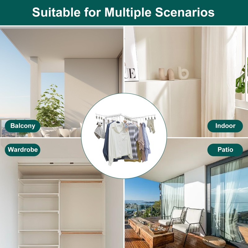 • Wide Application Any Space: You can install this clothes drying rack on your balcony, bathroom, laundry room, garage, wardrobe or by the window of your bedroom.