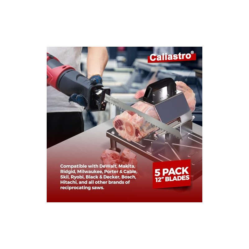 Hojas de sierra de corte de hueso de carne congelada de acero inoxidable de 12 pulgadas para sierras recíprocas y Sawzall, paquete de 5 Caliastro