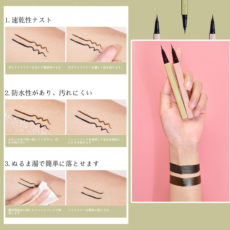 - 【パンダの目にノーと言う】速乾性アイライナー、速乾性リキッドアイライナー、にじみ防止アイライナー、跡が残らないアイライナー、にじみ防止アーティファクト、目尻に重ね塗りしてよりレイヤー感のある仕上がり。