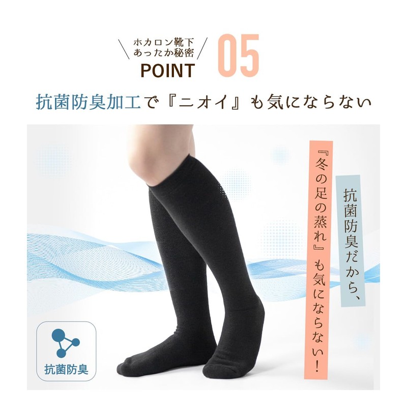 HOKARON Women's High Socks, Moisture Absorption, Heat-Generating, Antibacterial, Odor-Resistant, Total Pile, 8.9 - 9.8 inches (22.5 - 25 cm), Black