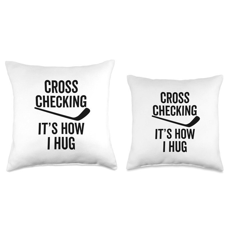 Hokey Pokey Sports Cross Checking It's How I Hug Hockey Player Throw Pillow, ...