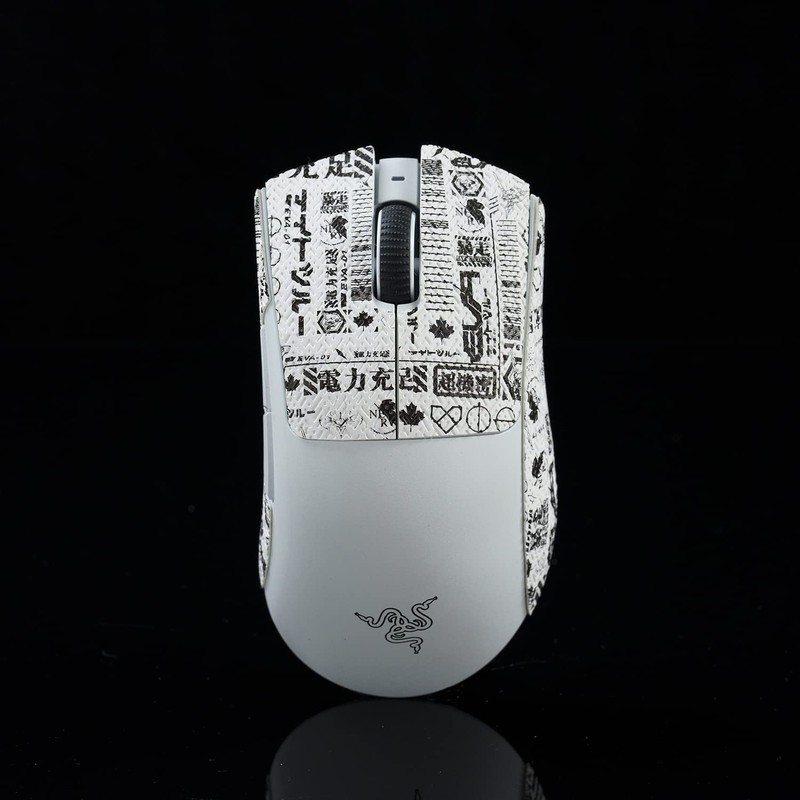 Hokeyio Mouse Grip Tape for Razer Deathadder V3 Pro Professional Non Slip Suck Sweat Resistant EVA White Black 0.5mm
