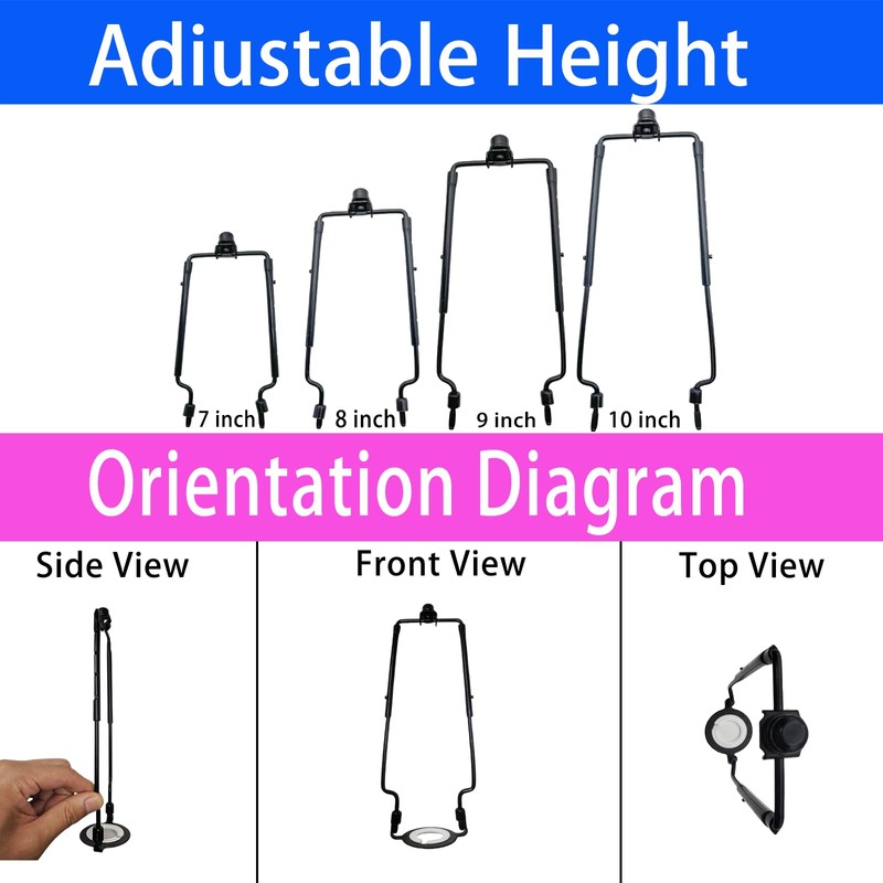 - Versatile 4-Level Adjustable Height: Fit with four adjustable height levels (7", 8", 9", and 10") designed for lamp shade heights from 8" to 12". Whether you need a lamp harp 7 inch, 8 inch, or 10 inch option, this adjustable lamp shade holder adapts seamlessly, eliminating the need for tedious measurements and ensuring a snug fit for every lamp shade harp application.