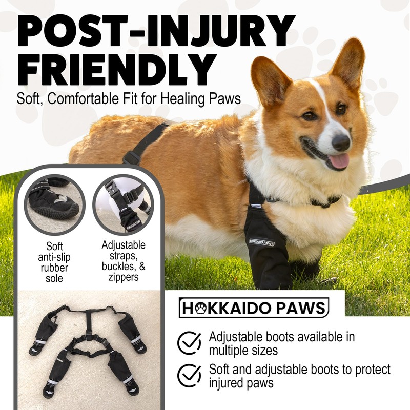 - Easy to Put On: These waterproof dog shoes come in all sizes available, including S, M, L, XL, and 2XL. An excellent choice for all breeds and sizes, they are easy to put on without the usual hassle, making an excellent gift idea for dog owners! Hokkaido Paws feature zippers on each boot to ease putting on and removing boots. Adjustable, extendable, sturdy straps with buckles ensure your dog won't lose boots during your adventures!