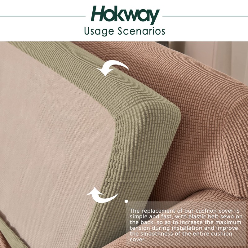 Hokway Stretch Individual Couch Cushion Slipcovers Reversible Cushion Protector Slipcovers Sofa Cushion Protector Covers(Sand,Small-2PC)