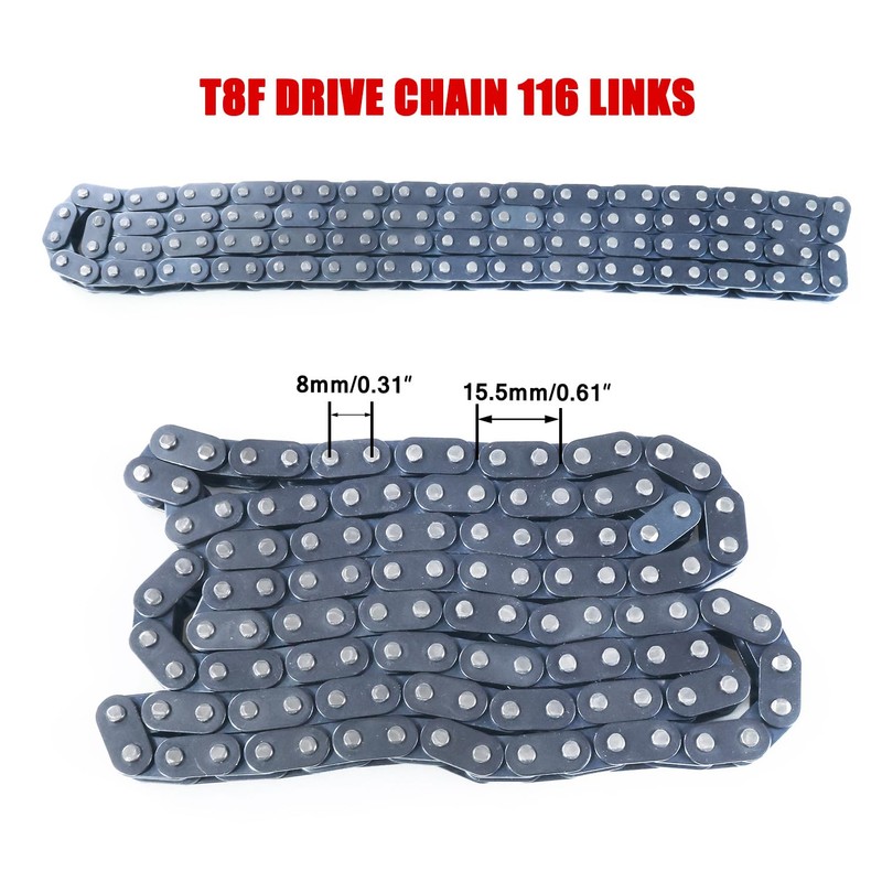- Fitment —T8F Drive Chain 116 Links fit for Coolster 49cc rocket pocket bike, APC 43cc mini chopper, SSR SX50 50cc pit dirt bike, 2000w ebike, 49cc 2 Stroke Kids Chinese ATV Quad mini moto mini bikes.