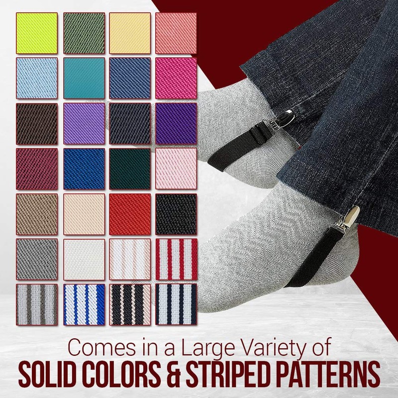 - LARGE VARIETY: Multiple color options and striped designs allow you to best match your pants, boots and taste Easily attach each strap to your pants and wrap around your foot for a slim look.