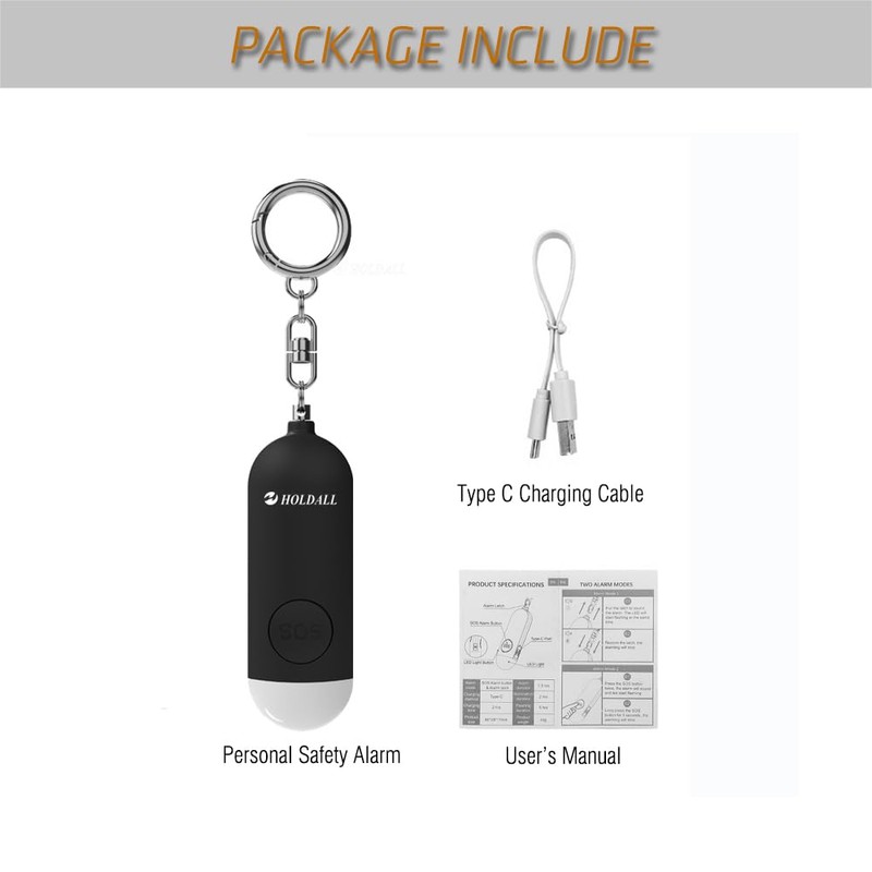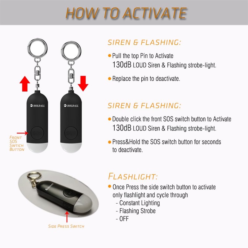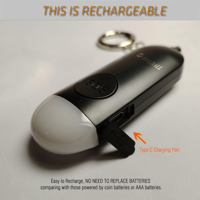 HOLDALL Personal Safety Alarm for Women–130dB Loud Protective Siren with Strobe Light-Acoustooptical Warning, Emergency Security Alert, 1.52oz Easy Carry for Elderly and Kids. (Black)