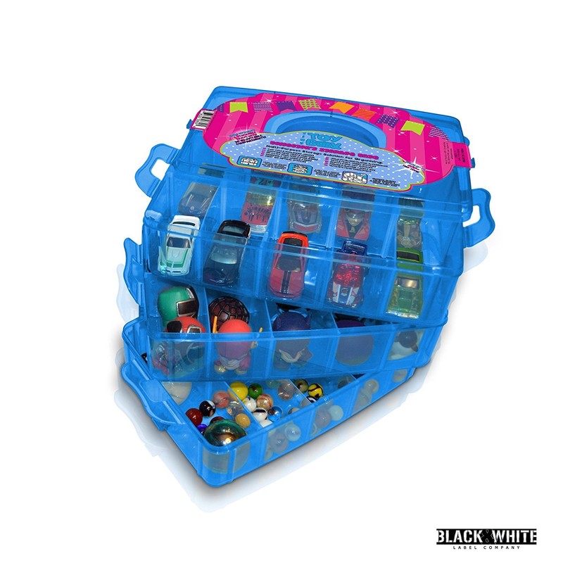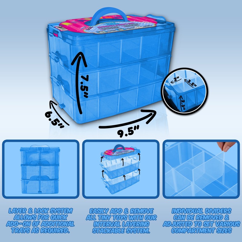 The Tiny Toy Box design makes its possible to hold up to 600+ of your favorite Tiny Toys. The unit comes with 3 layers including 27 Dividers which offers you a max 30 compartments. This box separates into 3 sections to create storage solutions that fit your needs. Run out of room!..Find additional single layers in our Amazon store. A real cool way to customize your Tiny Toy Box.