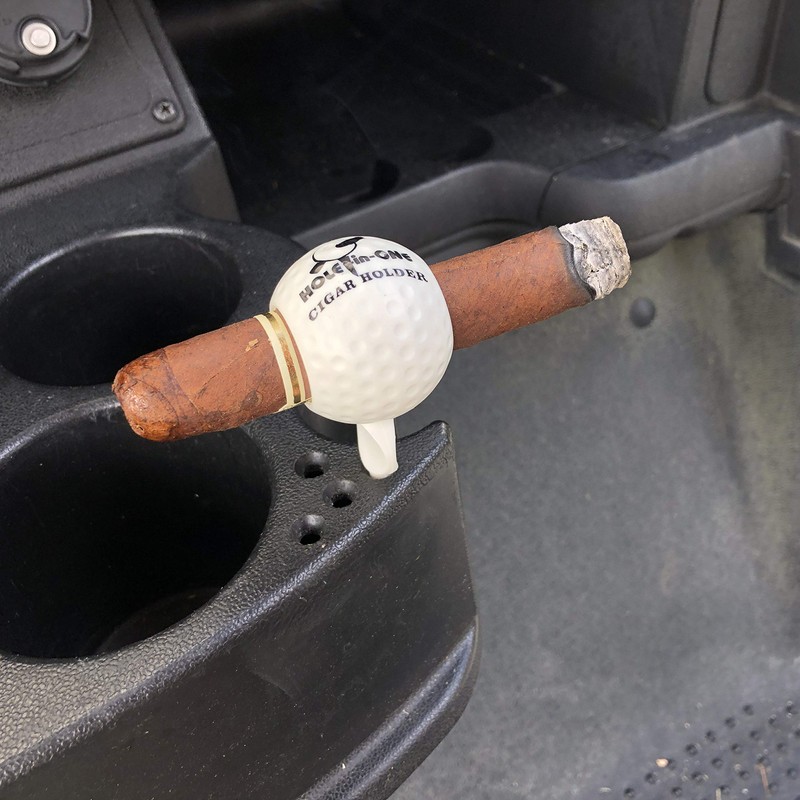 The most important ball in your bag...is the one that holds your cigar. Join Miguel Angel Jimenez in using the Hole-In-One Cigar Holder during your next round. Keeps cigars away from dew, pesticides, fertilizers, cart seats, and getting crushed! Warning: Do not smoke cigar while in holder. Do not use indoors. Do not stick pointy end in eye or other sensitive areas. Holds up to a 54 ring cigar. This is the original patented design. Proudly Made in the USA.