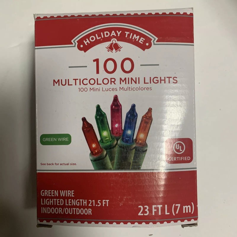 Holiday Time 100 MultiColor Mini Lights Green Wire Holiday Christmas Indoor Outdoor