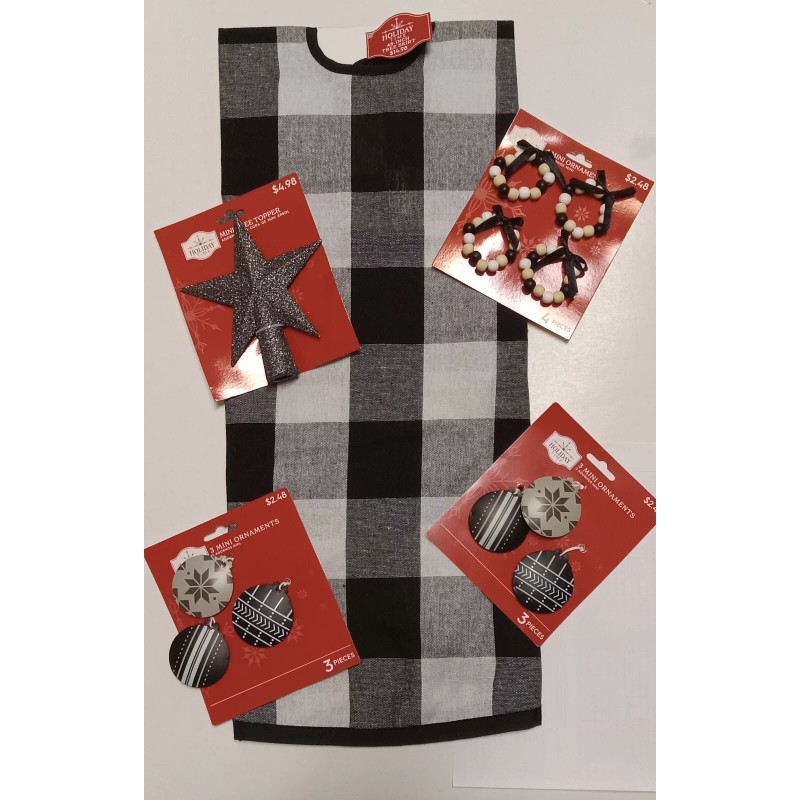 Holiday Time 48" Black, White, Buffalo Check Christmas Tree Skirt And Accessorie