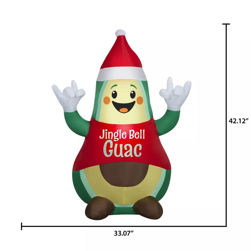 AVOCADO GUAC Jingle Bells UGLY CHRISTMAS SWEATER Airblown Inflatable 3.5' LED GEMMY Porch Yard Greeter RARE