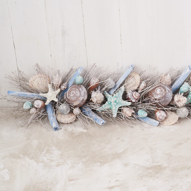 - [ Nature's Coastal Treasures: ] Immerse yourself in the beauty of the ocean with our thoughtfully curated composition. This garland features a harmonious blend of shells, resin starfish, driftwood, and twigs, bringing the beauty of the shore right to your home.