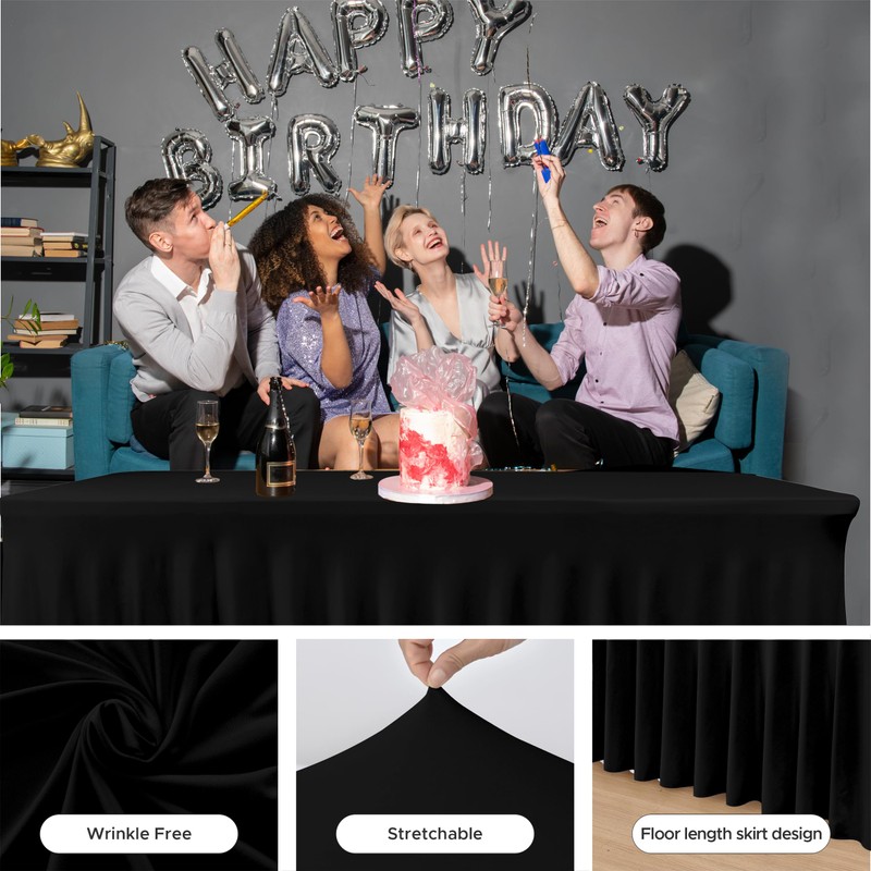 - Complete Set: Includes 2 ruffle spandex table skirts, designed to fit a standard 6ft table (72"L x 30"W x 30"H)