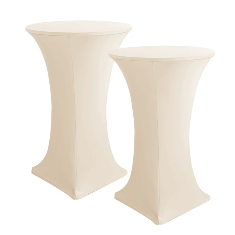 HolidayIdeas Cocktail Table Covers, 2 Pack - Fitted Stretch Spandex Square Corners Cocktail Tablecloths (Beige, Fit for 30"-32" Diameter x 43" Height Tables)