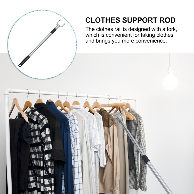 • 【Great Useful】closet reacher pole retractable stainless steel pole with a hook and handle extendable clothesline prop retractable clothing pole stainless steel clothes line pole adjustable closet pole for outdoor indoor. a good helper for your daily life, making your clothes removing and hanging time easier.