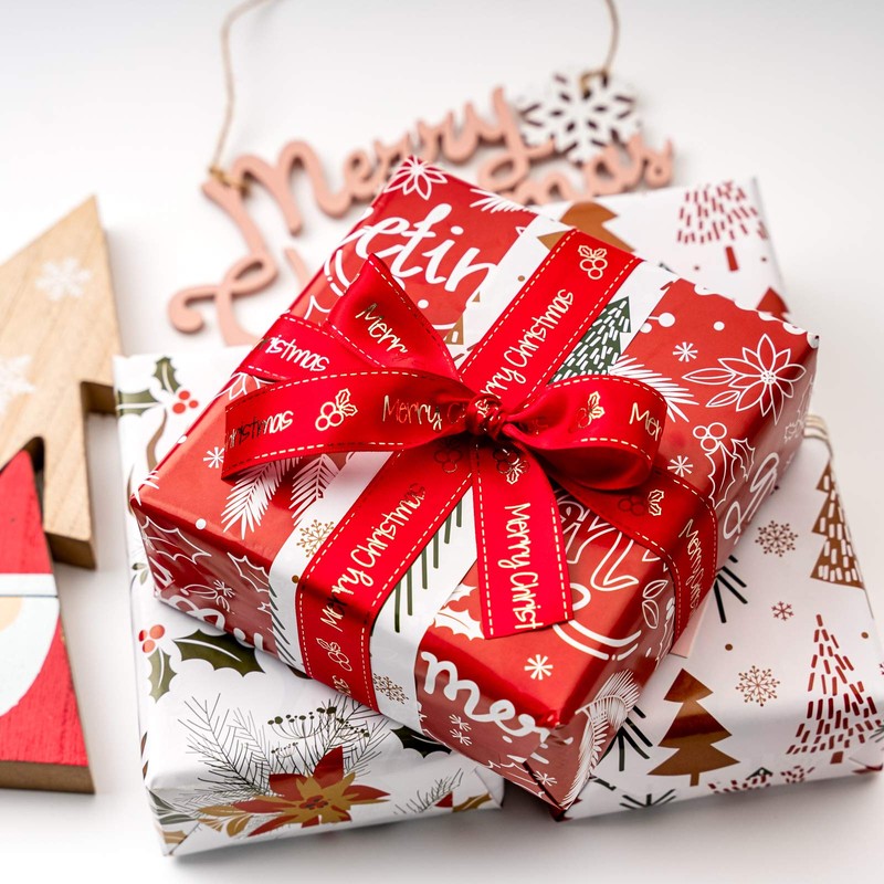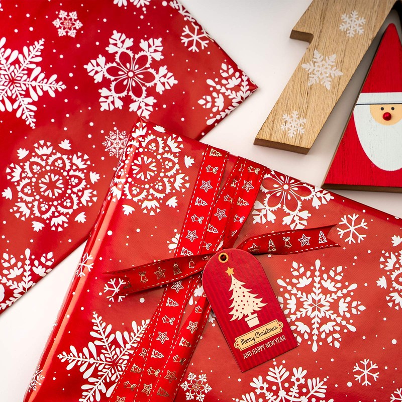 Holijolly Wrapping Paper Sheet - Folded Flat - 4 Different Christmas Red and White Design (2.8 Square Meters) - 70x100cm Per Sheet