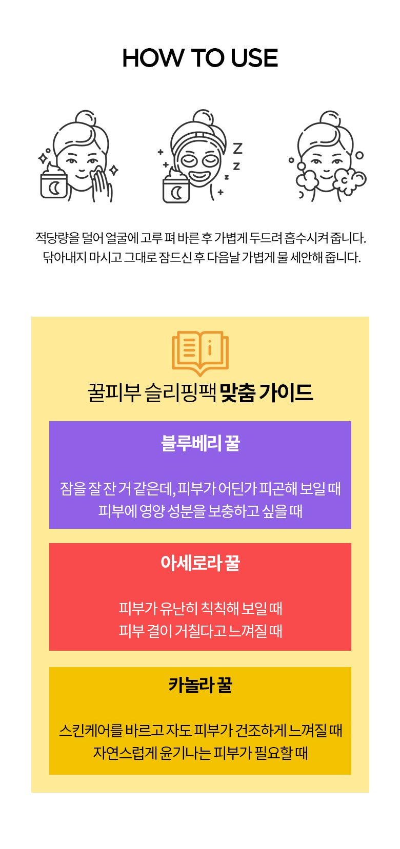 - How to use: Take an appropriate amount, spread evenly on the face, and pat lightly to absorb. Do not wipe it off, just go to sleep and lightly wash your face with water the next day.