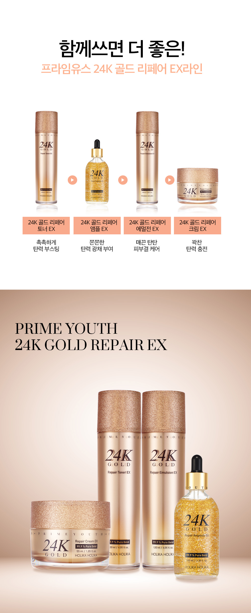 Holika Holika [1+1] Prime Youth 24K Gold Repair Ampoule EX 100ml / 홀리카홀리카 [1+1] 프라임유스 24K 골드 리페어 앰플EX 100ml