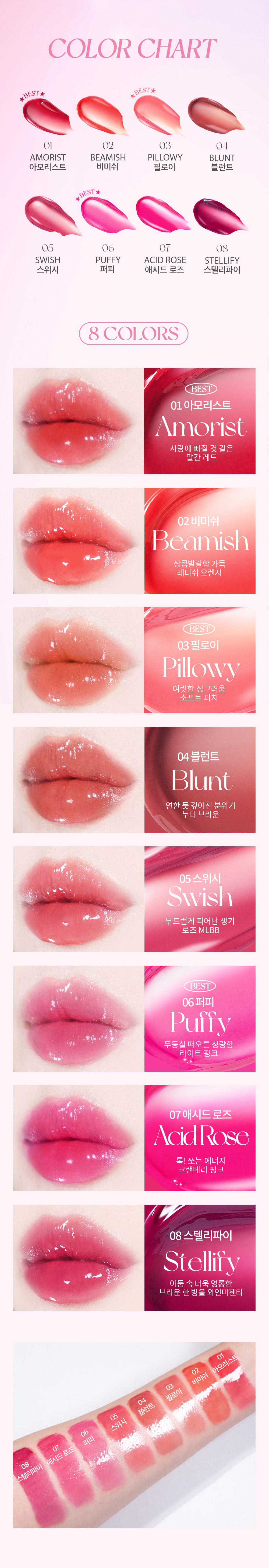 - All ingredients: 01Amorist diisostearyl maleate, diphenylsiloxyphenyltrimethicone, purified water, diphenyldimethicone, bis-diglycerylpolyacyl adipate-2, hydrogenated polyisobutene, poly Glycerin-3, polysorbate 60, cetyl PEG/PPG-10/1 dimethicone, sorbitan isostearate, butylene glycol, pentylene glycol, 1,2-hexanediol, dimethicone , hydroxyethyl acrylate/sodium acryloyldimethyl taurate copolymer, ceteareth-20, squalane, yellow No. 5, ethylhexylglycerin, fragrance, red No. 227, red No. 104 (1), linalool, blue No. 1, hexyl cinnamal, limonene, jojoba seed oil, apricot seed oil, camellia seed oil, tocopherol 02 Beamish diisostearyl maleate, diphenyl siloxyphenyl trimethicone, purified water, bis-diglyceryl poly. Acyl adipate-2, diphenyl dimethicone, hydrogenated polyisobutene, polyglycerin-3, polysorbate 60, cetyl PEG/PPG-10/1 dimethicone, sorbitan isostearate, butyl Len glycol, 1,2-hexanediol, dimethicone, pentylene glycol, hydroxyethyl acrylate/sodium acryloyl dimethyl taurate copolymer, ceteareth-20, squalane, titanium dioxide, yellow 5 , ethylhexylglycerin, fragrance, red No. 227, red No. 104 (1), linalool, aluminum hydroxide, ammonium polyacrylate, phenoxyethanol, hexyl cinnamal, limonene, apricot seed oil, camellia seed oil , jojoba seed oil, tocopherol 03 filoy diisostearyl maleate, diphenylsiloxyphenyltrimethicone, purified water, bis-diglycerylpolyacylatedipate-2, diphenyldimethicone, hydrogenated polyisobutene , polyglycerin-3, polysorbate 60, cetyl PEG/PPG-10/1 dimethicone, sorbitan isostearate, butylene glycol, dimethicone, pentylene glycol, 1,2-hexane. Diol, hydroxyethyl acrylate/sodium acryloyldimethyl taurate copolymer, ceteareth-20, squalane, titanium dioxide, ethylhexylglycerin, yellow No. 5, fragrance, red No. 104 (1), aluminum hydroxide Side, ammonium polyacrylate, red No. 227, linalool, phenoxyethanol, blue No. 1, hexyl cinnamal, limonene, apricot seed oil, camellia seed oil, jojoba seed oil, tocopherol 04 blunt diisostearyl maleate , diphenylsiloxyphenyltrimethicone, purified water, bis-diglycerylpolyacyl adipate-2, diphenyldimethicone, hydrogenated polyisobutene, polyglycerin-3, polysorbate 60, cetyl PEG /PPG-10/1 dimethicone, sorbitan isostearate, butylene glycol, 1,2-hexanediol, dimethicone, pentylene glycol, hydroxyethyl acrylate/sodium acryloyl die Methyl taurate copolymer, ceteareth-20, squalane, titanium dioxide, yellow No. 5, ethylhexylglycerin, fragrance, red No. 227, aluminum hydroxide, ammonium polyacrylate, linalool, phenoxyethanol, blue No. 1. , hexyl cinnamal, limonene, jojoba seed oil, apricot seed oil, camellia seed oil, tocopherol 05 swish diisostearyl maleate, diphenyl siloxyphenyl trimethicone, purified water, bis-diglyceryl polyacyl adipate. -2, diphenyl dimethicone, hydrogenated polyisobutene, polyglycerin-3, polysorbate 60, cetyl PEG/PPG-10/1 dimethicone, sorbitan isostearate, butylene glycol , dimethicone, pentylene glycol, 1,2-hexanediol, hydroxyethyl acrylate/sodium acryloyldimethyl taurate copolymer, titanium dioxide, ceteareth-20, squalane, ethylhexylglycerin, yellow. No. 5, fragrance, red No. 227, yellow No. 4, aluminum hydroxide, ammonium polyacrylate, red No. 104 (1), linalool, phenoxyethanol, blue No. 1, hexyl cinnamal, limonene, apricot kernel oil , camellia seed oil, jojoba seed oil, tocopherol 06 Puppy diisostearyl maleate, diphenylsiloxyphenyl trimethicone, purified water, bis-diglyceryl polyacyl adipate-2, diphenyldimethicone, hydro Generated polyisobutene, polyglycerin-3, polysorbate 60, cetyl PEG/PPG-10/1 dimethicone, sorbitan isostearate, butylene glycol, dimethicone, pentylene glycol, 1,2-hexanediol, hydroxyethyl acrylate/sodium acryloyldimethyl taurate copolymer, titanium dioxide, ceteareth-20, squalane, ethylhexylglycerin, red No. 227, fragrance, yellow No. 5, aluminum Hydroxide, ammonium polyacrylate, red No. 104 (1), linalool, yellow No. 4, phenoxyethanol, hexyl cinnamal, limonene, apricot seed oil, camellia seed oil, jojoba seed oil, tocopherol 07 acid rose. Diisostearyl maleate, diphenylsiloxyphenyltrimethicone, purified water, bis-diglycerylpolyacylatedipate-2, diphenyldimethicone, hydrogenated polyisobutene, polyglycerin-3, polysol Bait 60, cetyl PEG/PPG-10/1 dimethicone, sorbitan isostearate, butylene glycol, 1,2-hexanediol, dimethicone, pentylene glycol, hydroxyethyl acrylate / Sodium acryloyl dimethyl taurate copolymer, ceteareth-20, squalane, ethylhexyl glycerin, titanium dioxide, red No. 104 (1), fragrance, red No. 227, yellow No. 5, linalool, aluminum hydroxide , ammonium polyacrylate, hexyl cinnamal, limonene, apricot seed oil, camellia seed oil, phenoxyethanol, jojoba seed oil, tocopherol 08 Stellify diisostearyl maleate, diphenylsiloxyphenyl trimethicone, purified water. , bis-diglyceryl polyacyl adipate-2, diphenyl dimethicone, hydrogenated polyisobutene, polyglycerin-3, polysorbate 60, cetyl PEG/PPG-10/1 dimethicone, Sorbitan isostearate, butylene glycol, 1,2-hexanediol, dimethicone, pentylene glycol, hydroxyethyl acrylate/sodium acryloyldimethyl taurate copolymer, ceteareth-20, Squalane, titanium dioxide, red No. 227, ethylhexylglycerin, yellow No. 5, fragrance, linalool, aluminum hydroxide, ammonium polyacrylate, blue No. 1, phenoxyethanol, hexyl cinnamal, limonene, jojoba seed oil, Apricot seed oil, camellia seed oil, tocopherol