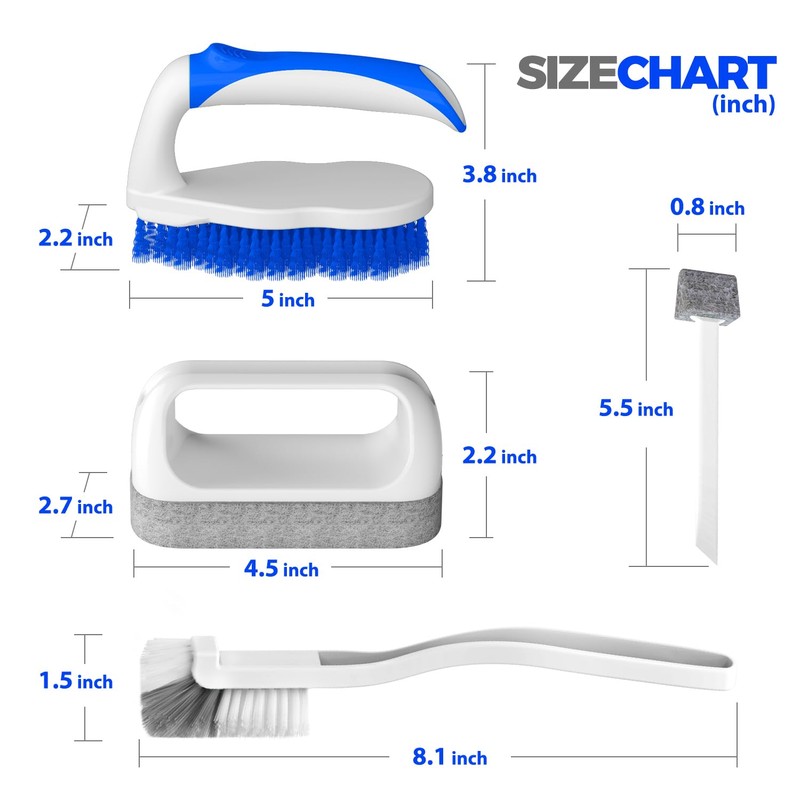 - 7 pack grout cleaning brushes with multiple usages includes 2 scrub brushes, 1 tile lines brush, 3 groove gap grushes, 1 scouring pad brush.