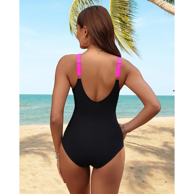 Holipick Hot Pink Black Women Tummy Control One Piece Swimsuit - Push Up Bathing Suit Full Coverage Slimming Swimwear L