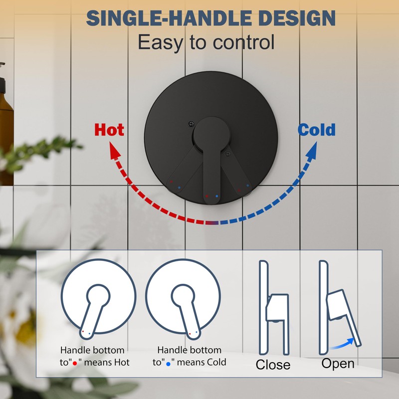 - SIMPLE AND CONVENIENT DESIGN: One-Handle design make it easy to adjust the water temperature and flow in each situation. The diverter makes it convenient to switch between shower head and tub spout