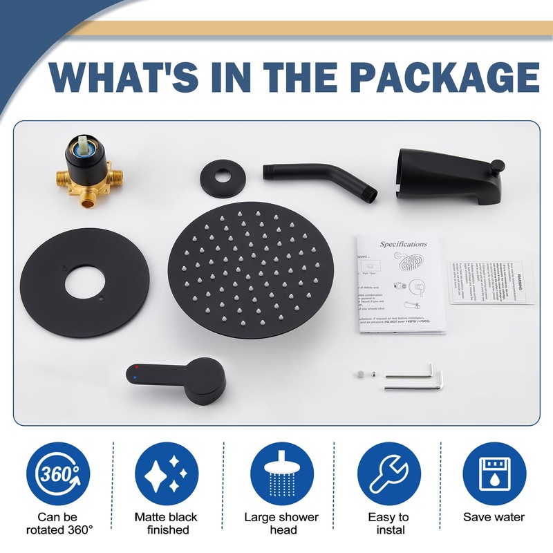 - 8 INCHES HIGH-PRESSURE SHOWER HEAD: HoliSpa black shower faucet set included 8 large and high-pressure rain shower head can be 360adjusted offering you a pleasant shower experience as hotel or spa
