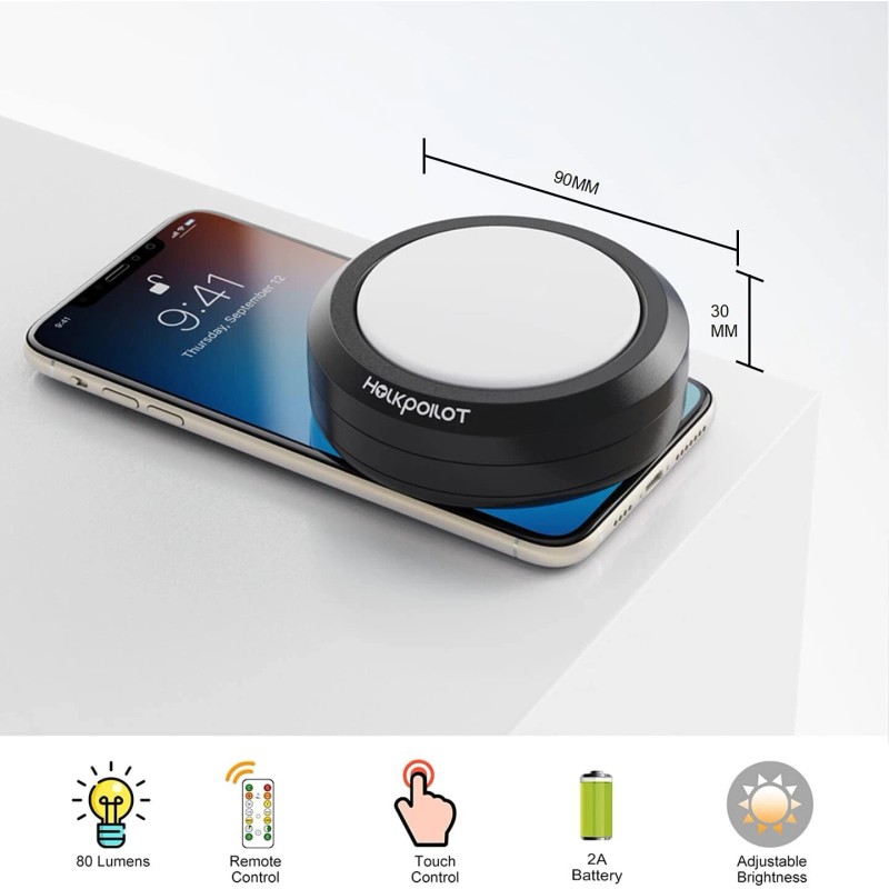 - HIGH-QUALITY & LATEST STYLE- HOLKPOILOT cabinet light is a high-quality product with a diameter of 3.5 in. From material to design, led puck lights with remote embody the highest level of craftsmanship. When you hold it in your hand, you will find what you get more than just one Lamp but a high-quality lifestyle. Do you have trouble finding things on your shelves/cabinets without a light source