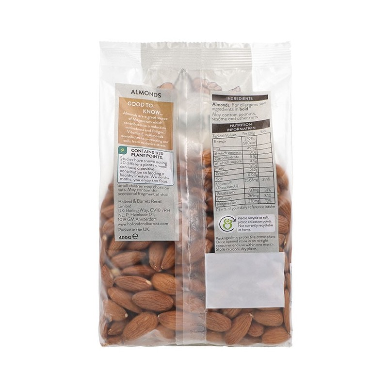 Holland & Barrett Whole Almonds provide an excellent source of protein and fibre. These whole almonds are seasonally harvested and are perfect for snacking and baking.