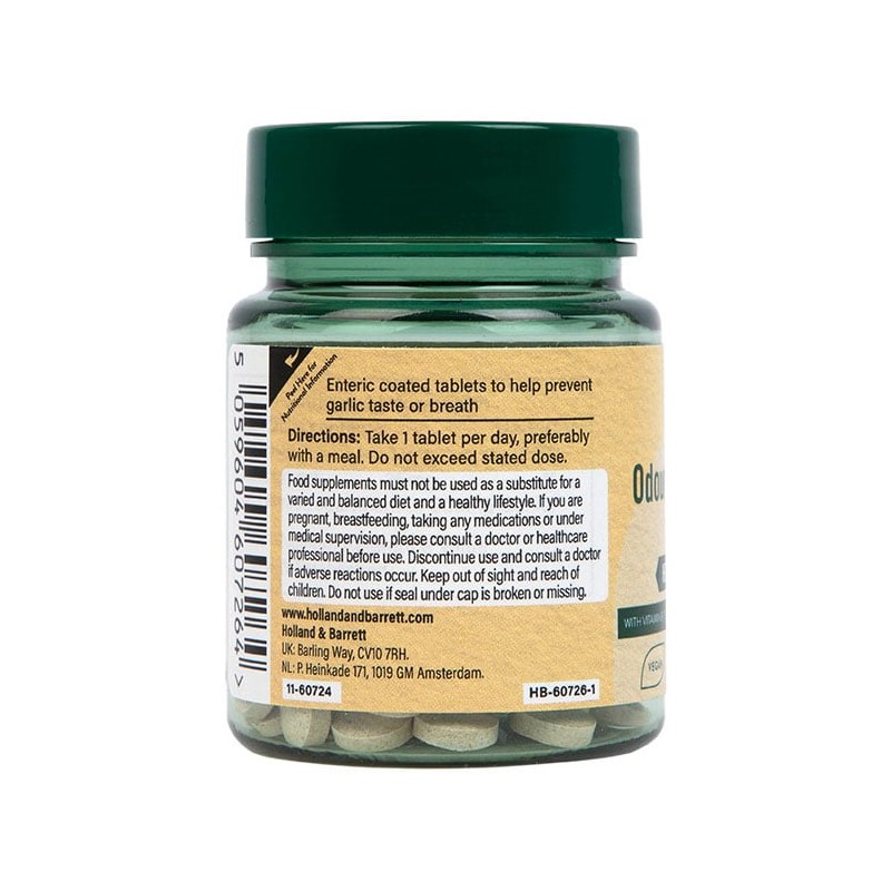 Holland & Barrett Enteric Coated Odourless Garlic capsules are an ideal way to aid supplementing with garlic, these capsules support heart health; with Vitamin B1 to support normal heart function.