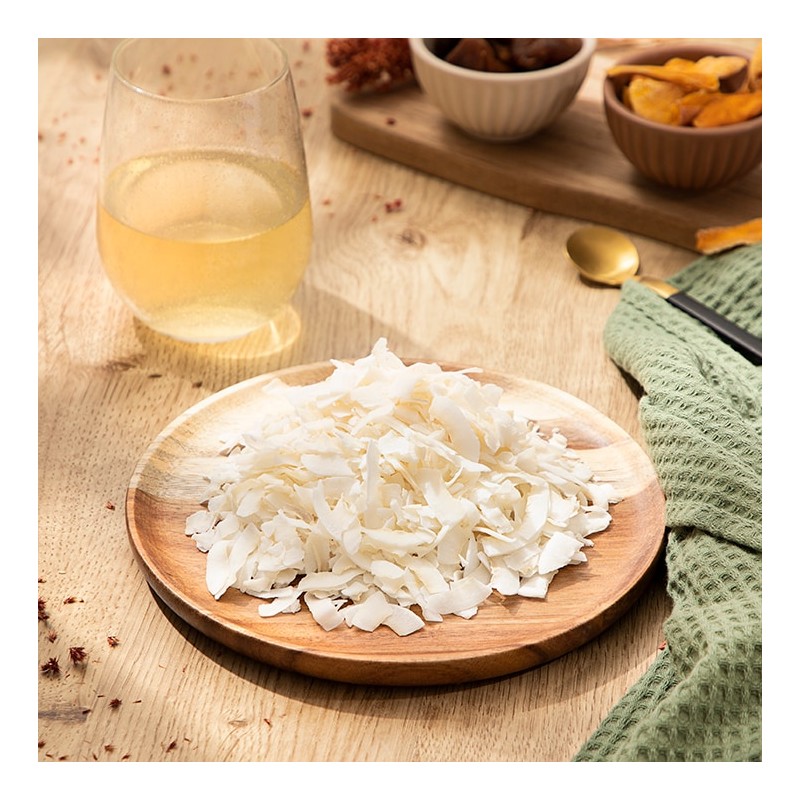 Holland & Barrett Flaked Coconut is dried and unsweetened, providing an excellent source of fibre. These flakes are a great topping for curries to add a natural sweetness and crunch or for using in tasty bakes.