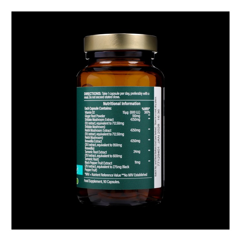 - Turmeric, Boswellia and Ginger are all included within this supplement, turmeric is a powerful natural active that supports joint health and flexibility. Whilst Vitamin D contributes to the maintenance of normal bones.