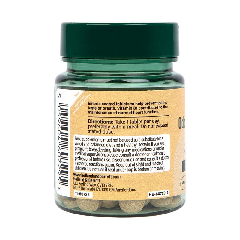 Holland & Barrett Enteric Coated Odourless Garlic capsules are an ideal way to aid supplementing with garlic, these capsules support heart health; with Vitamin B1 to support normal heart function.