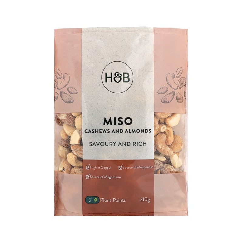 Delight in the deliciously nutty and savoury taste of our Miso Cashews and Almonds. With a satisfying crunch and subtle umami flavours, this snack is the perfectly balanced tasty treat - to enhance the flavour profile, we've added a Miso Flavour Seasoning, rich in umami ingredients. This combination creates a unique taste experience that you won't be able to resist.
