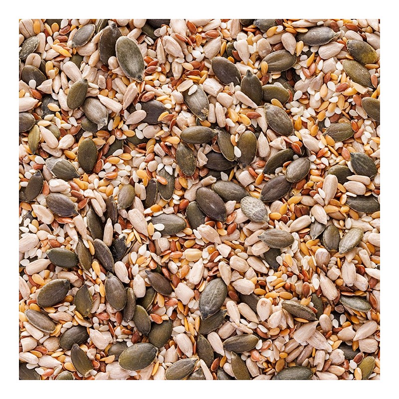 Sunflower seeds (30%), Pumpkin seeds (30%), Golden Linseed (15%), Brown Linseed (13%), Sesame seeds (12%).