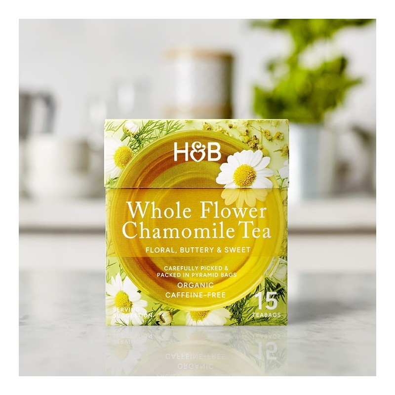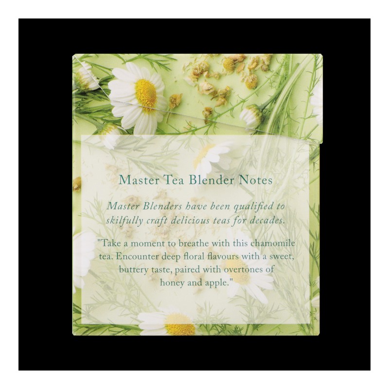 Take a moment to breathe with our relaxing chamomile tea, which is naturally caffeine free. This organic Sri Lankan tea is sourced in partnership with B Corp-certified English Tea Shop and is made with whole-flower chamomile. Deep floral flavours with hints of sweetness, honey and apple blend together for a smooth and delicious cuppa that brings a moment of calm to your day. Enjoy a cuppa before bed or any time you want to relax.
