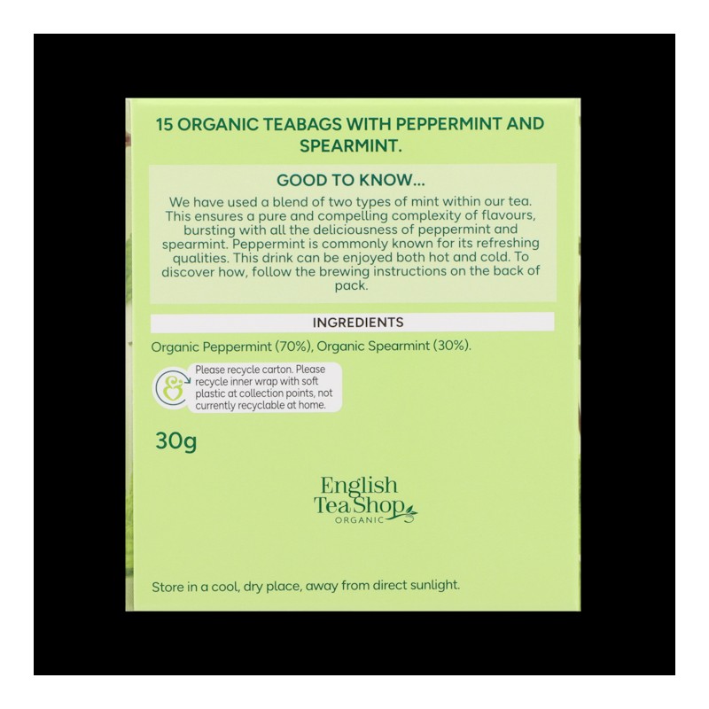 Take a moment to relax with our calming and organic peppermint tea, which is naturally caffeine free. This organic Sri Lankan tea is sourced in partnership with B Corp-certified English Tea Shop, using a master blend of two types of mint for a cuppa that’s bursting with flavour. Peppermint and spearmint combine to create a fresh and tangy flavour perfect for any time of the day. Brew in hot water or enjoy it as a hydrating iced tea.