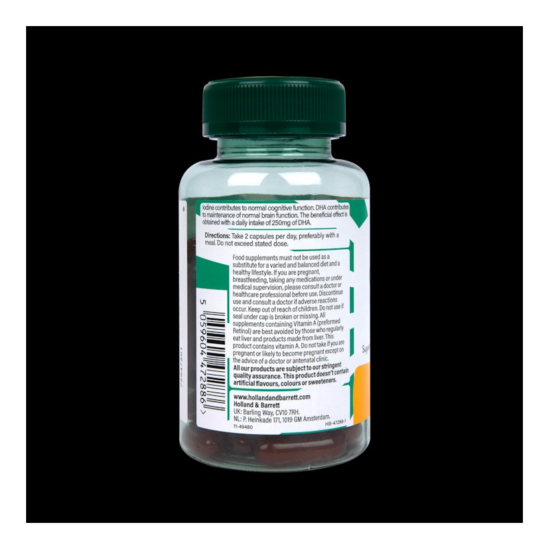 Holland & Barrett Brain Health with Omega contain a blend of essential vitamins and minerals along with Omega 3 to support cognitive function and normal brain function.
