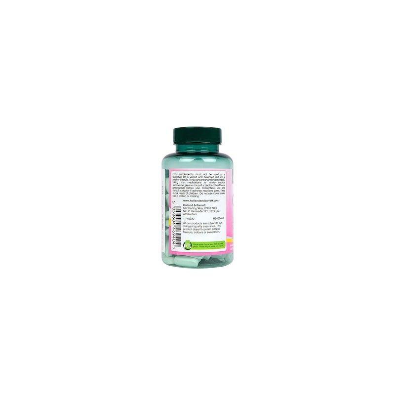 Food supplements must not be used as a substitute for a varied and balanced diet and a healthy lifestyle. If you are pregnant, breastfeeding, taking any medications or under medical supervision, please consult a doctor or healthcare professional before use. Discontinue use and consult a doctor if adverse reactions occur. Keep out of reach of children. Do not use if seal under cap is broken or missing.