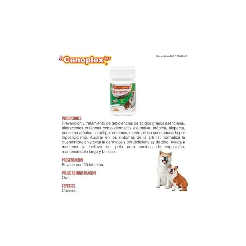 Suplemento en deficiencias de ácidos grasos esenciales, artritis y alteraciones cutáneas como: dermatitis, alopecia, eczema atópico, impétigo, eritemas o manto piloso seco causado por hipotiroidismo. Ayuda a regular el proceso de queratinización y dermatosis por deficiencia de zinc, así como mantener el lustre y belleza del pelo en perros de exposición.