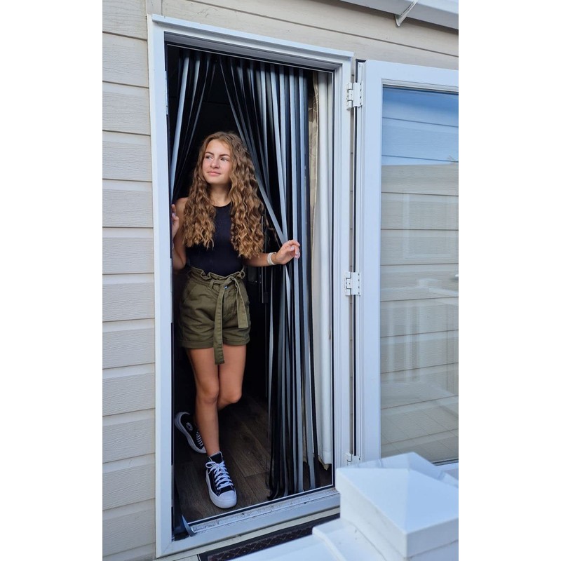 Holland Plastics Original Brand Heavy Duty CARAVAN/RV Door Curtain,Bug Blind,Fly Blind,Strip Blind-62CM WIDE - BLACK & SILVER